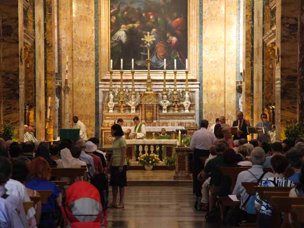 The climax of these three days was the solemn concelebration in the Church Saint Louis des Français, presided over by Mons Robert Legall, Archbishop of Toulouse, who happened to be in Rome and wanted to share this important celebration with us.