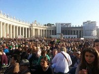 105 people responded to the invitation (92 youth, 11 adults and 2 priests). The purpose of the pilgrimage was to make young people understand that the Church was built on the testimony of men and women who gave their lives for the glory of God. These include Peter and Paul, who have lived their martyrdom in Rome and are two main pillars on which the Church is founded. To make the most of this pilgrimage, the group found accommodation at the Salesians in Rebibbia area and all could reach the centre of Rome by metro. The guided tours of the most meaningful sites, the testimonies, the reflections of the group and time for personal reflection, allowed young people to feel part of a church carrier of a great legacy. One of the most important event was the audience with the Pope, Wednesday, Oct. 23: almost a hundred thousand pilgrims turned out. The warmth and enthusiasm inspired by Pope Francis impressed several young people who could identify with him and his message so appropriate for today. They were touched by his fatherly attitude showing a Church in need of young people. Many of the young people had the opportunity to attend, on Thursday 24, the ordination of two Nuncios, presided over by the Pope.
