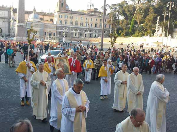 On Friday evening the miraculous image of Our Lady was carried in procession along the Via del Corso from St. James Church to the church that was “the guest of honour”, Santa Maria dei Miracoli.