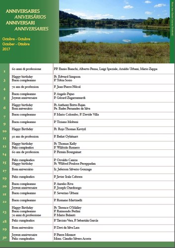 This is the list of birthdays and other anniversaries regarding the Betharramite Religious for the month of October.