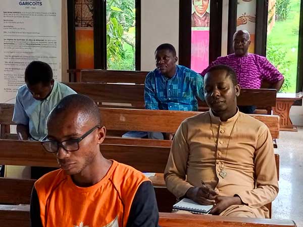 During the Eucharistic celebration, Br. Éric Touré SCJ, Br. Fabian Mahan SCJ, Br. Constant Cheghe SCJ and Br. Toussaint Tah SCJ renewed their vows for two years in the Congregation of the Sacred Heart of Jesus of Betharram, in the hands of Fr. Jean-Paul Kissi SCJ, First Regional Vicar of the St. Michael Garicoïts Region.