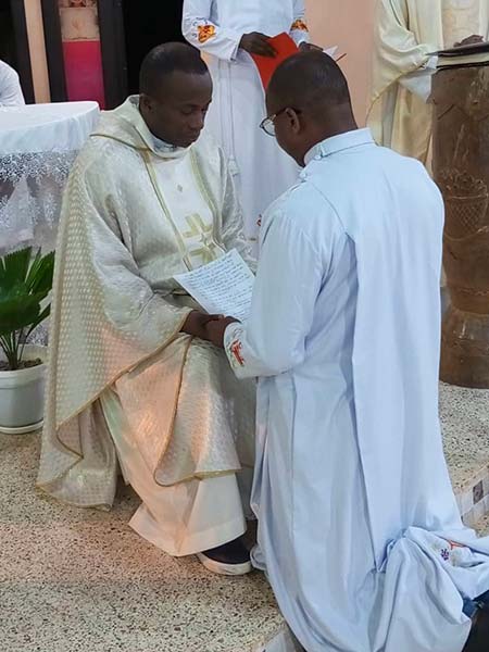 During the Eucharistic celebration, Br. Éric Touré SCJ, Br. Fabian Mahan SCJ, Br. Constant Cheghe SCJ and Br. Toussaint Tah SCJ renewed their vows for two years in the Congregation of the Sacred Heart of Jesus of Betharram, in the hands of Fr. Jean-Paul Kissi SCJ, First Regional Vicar of the St. Michael Garicoïts Region.