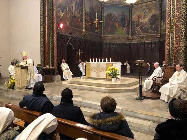 "Beti aintzina. ¡Adelante, siempre!" Es con el conocido lema de San Miguel Garicoits citado por el P. Jean-Marie Ruspil scj, Vicario Regional en Francia y España, que concluyó el 12 de enero de 2025, en la iglesia de Saint-Palais, la celebración de las ordenaciones diaconales de dos jóvenes hermanos: el Hno. Salomon Bandama scj y el Hno. Aurélien Emeric Kouamé Brou scj.