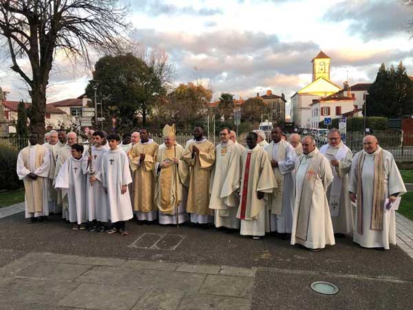La celebración fue presidida por Mons. Marc Aillet, obispo de Bayona, en presencia del P. Simone Panzeri scj, Superior Regional de la Región San Miguel Garicoits. Concelebraron también varios religiosos betharramitas, el párroco de Saint-Jacques du Pays de Mixe – Saint-Palais y sacerdotes de la diócesis de Bayona. A la solemne ceremonia asistieron numerosos amigos de los ordenandos.