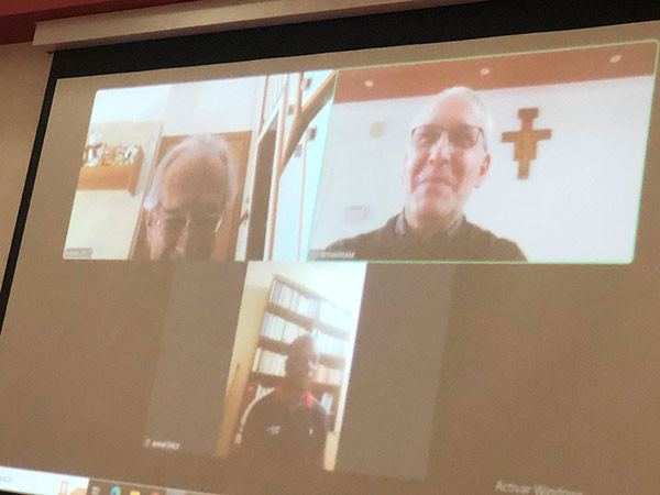 El Rev. P. Jean Messingue SJ, de la Costa de Marfil, ha sido invitado a animar esta sesión de formación. Es psicólogo, formador, consejero y director del instituto de los Jesuitas en Costa de Marfil. También él, sin embargo, no ha recibido el visado para poder llegar a Francia. Por eso, anima la sesión en videoconferencia.