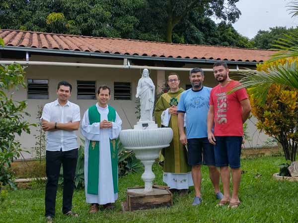 Ce jour-là, une raison particulière a réjoui le cœur de chacun. Après la communion, le P. Eder Chaves scj, avec le P. Davi Lara scj, a béni une statue du Sacré-Cœur de Jésus. Placée dans les jardins de la maison, l'image accueille ceux qui viennent à la maison de formation ; elle est aussi une invitation à la prière pour la communauté.
