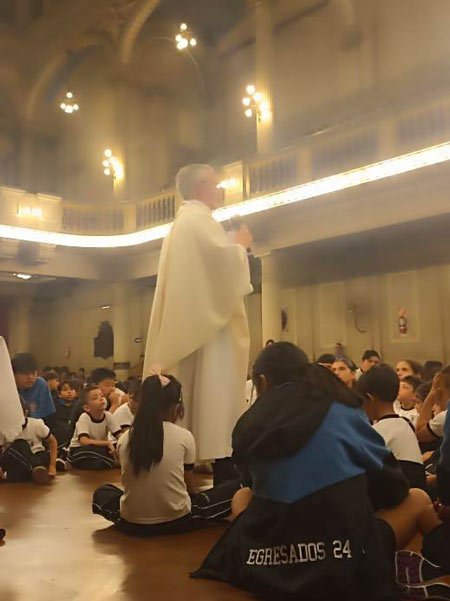 Nell'Aula Magna si è celebrata una Santa Messa, che è stata presieduta da P. Gustavo Agín scj, Superiore Generale, e concelebrata da due sacerdoti diocesani che aiutano nel servizio pastorale del Collegio.